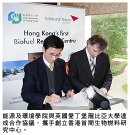 陳仲良教授則向記者朋友介紹了能源及環境學院最近的一些進展。「我們將以香港科技園作為學院的辦公室,同時設立四間實驗室,」陳教授說。「自學院成立以來,已舉行多個學術研討會,並於今年1月與英國愛丁堡龍比亞大學(Edinburgh Napier University)達成合作協議,創立香港首間生物燃料研究中心,現正招募教學及研究人員,研究如何把有機廢料轉化為運輸用燃料。」與此同時,學院正與澳洲新南威爾斯大學一所研究納米物料的實驗室磋商,成立聯合實驗室,把納米科技應用於太陽能及清潔環境(空氣、水)等範疇。
