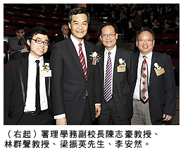 「在個人層面上,同學要積極和用功學習,這是邁向成功的不二之法;在大學層面上,城大所有教職員上下一心、高瞻遠矚,根據未來社會的需要規劃大學的發展和課程;在學生會層面上,作為學生代表,學生會必須與大學緊密聯繫和合作,以進一步加強同學的競爭力,」梁先生說。