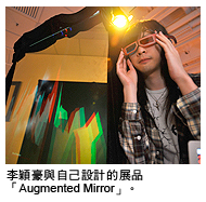 三年級學生李穎豪運用面擴張實境技術(augmented reality)設計了一個互動裝置,以特製的單透鏡連接現實和虛擬世界。他對與身心相關的哲學問題很感興趣,並由此萌發創作靈感。他說:「我在作品中裝上腦波探測器,可以反映鏡前參觀者的情緒,讓參觀者體驗身心互動,試圖解答有關的哲學問題。」