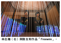 三年級學生林智瀚和另外兩名同級同學一起設計的展品「Freewire」,結合裝置、互動、動感探測和投映技術,為參觀者帶來全新的影像經驗。他們運用「體積繪圖」技術模擬四個場景,包括放煙花、下雨、海浪和噴泉,又以懸掛的棉線製造場景深度的效果。參觀者與各個場景互動時,可以體驗運用點、線、平面和立方體等簡單元素創造物體。
