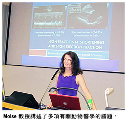 Moise教授主要講述犬科動物心臟病的治療,與會人士均是香港獸醫(yī)學(xué)會會員。該學(xué)會成立於1982年,是本港獸醫(yī)的專業(yè)機(jī)構(gòu)。本次活動由城大何兆煒教授與香港獸醫(yī)學(xué)會共同籌辦。何教授說:「講座氣氛良好,聽眾反應(yīng)熱烈,問答環(huán)節(jié)提問踴躍。」
