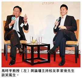 馬教授又透露道,當初加入政府工作是基於一種使命感。他認為,自己曾經得到過政府的幫助;當自己有能力時,便想回饋社會。在六年的政府工作生涯中,雖然嚐過不少酸、苦、辣,現在回想起來,箇中的味道仍是甘甜的。