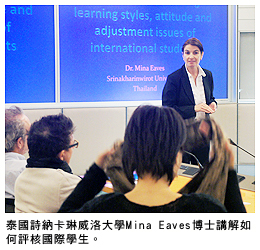 「我們邀請了多位不同背景的講員,既有曾經獲得城大傑出教學獎的同事,也有特邀的海外嘉賓。所有工作坊題目均與城大的發展密切相關,」桑戴維先生說。例如,其中一位講員是來自泰國詩納卡琳威洛大學的Mina Eaves博士,她主講如何評核國際學生?!肝覀儗@個題目很感興趣,因為城大正努力吸收更多國際學生入學,我們需要多了解如何評核這類學生,並熟悉相關的問題,」桑戴維先生說。