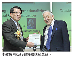Katz教授回顧自己數十年來關於傳媒及傳播的研究和著述,自嘲為「孤芳自賞的涉獵」,與出席講座的國際學者和學生分享學習心得,但表示未能肯定自己在傳播學研究領域的大量工作是否可算是「國際的」傳播。