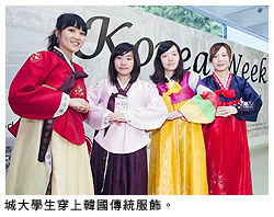城大2011韓國週充分展示了韓國的傳統(tǒng)文化與現(xiàn)代風(fēng)貌,精彩內(nèi)容包括街頭舞蹈和歌唱表演,還有韓國文化、文學(xué)、歷史知識(shí)講座,以及韓文和韓語教學(xué)工作坊。