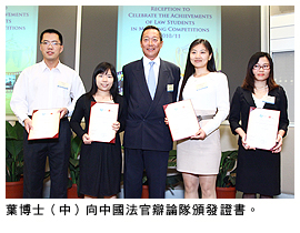 2011 Philip C Jessup國際模擬法庭賽香港地區(qū)賽 | · 最佳榮譽(yù)上訴人提名獎 · 最佳榮譽(yù)被告提名獎 · 最佳辯論員亞軍:陳嘉恒 (LLB 2008) |