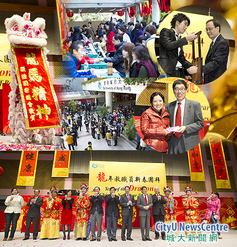 香港城市大學送兔迎龍,一千多名教職員於1月31日中午聚首一堂,參加人力資源處組織的龍年新春團拜,慶祝龍年來臨。