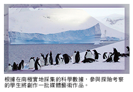 「南極探險:以藝術與科學相結合的創意方式勘察極地環境」就是其中一個例子。這個探險考察項目由創意媒體學院領導,旨在融合科學與媒體藝術,幫助公眾加深了解南極地區因氣候變暖而帶來的長遠不良影響,並探討如何保護這個地區的環境與生態。