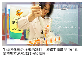 有些項目以可持續發展與「綠色」研究爲特色。例如,電子工程學系鍾樹鴻教授帶領的「智能家居、零碳排放」項目,將研究家用環保技術;能源及環境學院李鈞瀚博士將研究怎樣把廚餘製成生物能源。生物及化學系亦推出確定護膚品中化學物對本港水域的污染風險和把廢紙變成綠色燃料的研究。