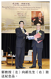 城大校長郭位教授表示,郝先生數十年來密切關注兩岸情勢,不但親眼目睹,而且親身參與了許多歷史事件,今天光臨城大為聆聽演講的各位來賓細細道來,令聽眾大大得益。