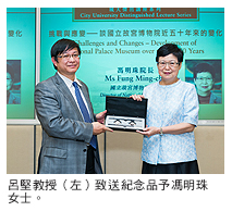 香港城市大學(城大)11月3日舉辦「城大傑出講座系列」,臺北國立故宮博物院(臺北故宮)院長馮明珠女士應邀演講,題為「挑戰與應變——談國立故宮博物院近五十年來的變化」,詳述臺北故宮近半個世紀來因應社會變遷而發展。