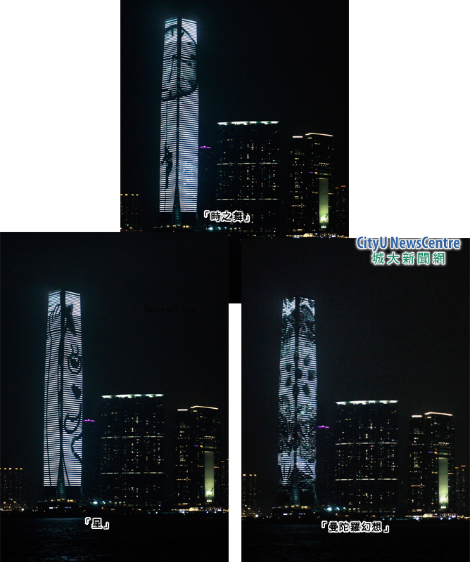 作品出自該學院修讀「創意媒體藝術碩士」課程的六名學生之手,在環球貿易廣場(ICC)大廈的外牆上播映,畫幅總面積達77,000平方米。