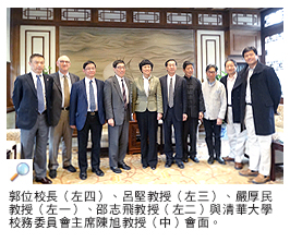 同日,郭校長訪問清華大學,與校務委員會主席陳旭教授會面,討論兩項事宜:《儀禮》復原與當代日常禮儀重建研究的合作事宜;以及邀請清華大學加盟成為深圳計劃的協作學院,藉以加強由城大與美國康奈爾大學合辦的動物醫學院。《儀禮》復原的研究項目將由城大創意媒體學院院長邵志飛教授出任子課題負責人。