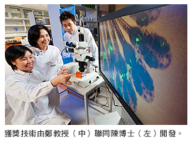 陳子翔先生及陳雪平博士創(chuàng)立的水中銀(國際)生物科技有限公司(下稱「水中銀」),利用城大生物醫(yī)學(xué)系鄭淑嫻教授及其科研團(tuán)隊(duì)開發(fā)的技術(shù)檢測毒素,藉以保障食品及用品安全,卻無須使用動(dòng)物測試。獲獎(jiǎng)技術(shù)以斑馬魚的胚胎來檢測毒素,只需48至72小時(shí)便能準(zhǔn)確地識別污染物,且能同一時(shí)間檢測1,000種毒素,以及樣本的毒理機(jī)制,檢測水、食物、藥物、塑膠產(chǎn)品、化妝品等。