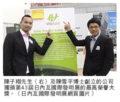 香港城市大學(xué)(城大)校友陳子翔先生及陳雪平博士創(chuàng)立的生物科技公司,把城大開發(fā)的生物測毒專利技術(shù),應(yīng)用於檢測食物、化妝品等各種物品,並因此奪得第43屆日內(nèi)瓦國際發(fā)明展的最高榮譽(yù)大獎(jiǎng)。