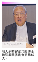 大學副監督梁乃鵬博士首先歡迎新任顧問委員會成員,同時感謝校董會主席胡曉明先生與校長郭位教授的得力領導。
