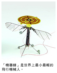 哈佛大學機械人專家團隊和一名城大工程師聯(lián)合研製出節(jié)能裝置,使微型飛行機械人可在空中逗留更長時間。該技術可用於提供災區(qū)俯瞰圖像,或偵測有害化學品。