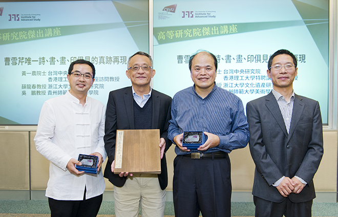三位學(xué)者12月13日為香港城市大學(xué)(城大)高等研究院主持講座,發(fā)表題為「曹雪芹唯一詩、書、畫、印俱見的真跡再現(xiàn)」的演講,並於會場展示這些真跡的完整高清複製本。