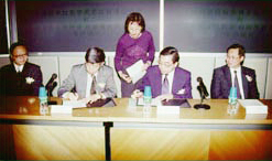劉璧如數學科學研究中心(以下簡稱“中心”)與中國科學院數學與系統科學研究院(以下簡稱“中科院”)之間的學術交流,雙方於10月30日假多媒體會議廳簽訂合作協議書,儀式由中心主任王世全教授與中科院院長楊樂教授主持。兩位教授都表示很高興能夠落實進一步加強彼此之間的友好合作關係。這份為期三年的協議書內容包括:雙方同意互派學者及研究人員對共同感興到趣的課題進行合作研究和學術交流。主要的合作研究項目有:雙曲方程、運籌學、金融數學、數值分析及力學、小波分析、漸近分析等。此外,雙方亦同意聯合招收和培育研究生,並會互派研究生到對方單位選修課程和參加討論班,所得學分將獲雙方承認。