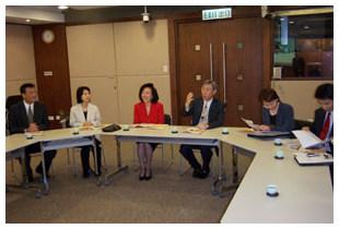 王博士在教育統籌局三位官員包括位副局長(高等教育及優質教育)謝凌潔貞女士、首席助理局長(高等教育組)梁卓文先生及教統會秘書賴黃淑嫺女士的陪同下到訪本校,校長張信剛教授率領副校長高彥鳴教授、鍾寶璇教授及黃玉山教授招待迎接,並向各位來賓介紹城市大學的抱負、策略規劃、學術架構、課程要求,以及教職員和學生成就。