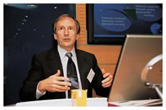 戴教授說,當流動裝置成為學習環境的一部份,我們的學生、導師及院校之間的互動將進入新的時代,這就是電子學習與流動商貿的匯合。但這裡還有幾個涉及社會及個人的問題尚待解決,例如誰應控制資訊?我們能否有效「過濾」資訊?還有,在資訊科技領域裡,應用與設計亦十分重要,特別是人與人以及人與裝備之間的配合。他說:「如果我們要真真正正創造一個資訊及學習的環境,必須要放眼於全球,因為這正是我們的學生所面對的工作環境:我們在本地生活,但要面向全球工作?!?/p>