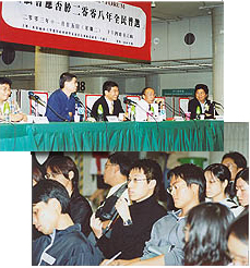 The public forum on "Direct Election for LegCo in 2008", held at the Purple Zone of the University Concourse on 25 November, aroused a heated discussion on political development of Hong Kong. The forum was a highlight of the Hong Kong Week, 24-28 November, organized by a group of third-year Applied Social Studies students.