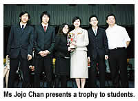 A prize presentation ceremony was held to recognize outstanding works. The championship went to the "Diving Dragon" team who came up with the idea of  a cruise tour around the Victoria Harbour, Tsing Ma Bridge, and Lantau Island on a traditional Chinese-style boat. "The boat has different themes throughout the year. Visitors can enjoy the cruise tour and learn about our history, culture and festivals," said Sylvia Lo, one of the team members. Highlights included a Chinese show, a go go dance, old toys and DIY lanterns. To complete the project, the students studied Chinese history and culture extensively. "It was an eye opening experience. We learned how to incorporate traditional culture in a new way to meet the expectations of  tourists from overseas," she added.
