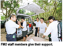 Ms Esther Lee, one of the walkers and staff of the Student Development Services, gave a spiritual boost to the team by providing "chicken soup", such as sharing and inspiring games, to release walkers' anxiety and develop mutual trust.