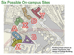 Six possible sites, all of which fulfilling the projected space requirement of 40,000 square metres for a probable full-time student number of 6,000, were identified for consideration. In identifying these sites, the Consultants have carried out studies on each of the following aspects: statutory planning, impact on the neighborhood, landscaping, structural and geotechnical issues, building services, environmental, traffic and transport, existing infrastructural facilities within the University, existing MTR tunnels, and existing Shek Kip Mei Park facilities.