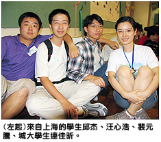 來自上海的邤杰和汪心浩剛入讀商學院。他們認為城大充滿活力和發展迅速,友善的同學不僅是城大的大使,也是香港的大使。他們在城大結識的新朋友裴元騰是電腦科學系一年級生,他認為城大令他有機會接觸到東西方融合的文化。「這個經驗令我眼界大開,畢生難忘,」他說。