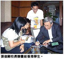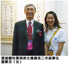因?yàn)槲沂沁@個(gè)學(xué)期唯一一個(gè)在復(fù)旦大學(xué)就讀的城大交換生,故在復(fù)旦100周年慶典活動(dòng)中,被委任為復(fù)旦代表,主要工作是接待城大校長(zhǎng),陪同他出席不同的慶典活動(dòng)。就是這樣,我獲得了兩天與校長(zhǎng)張信剛教授交流的機(jī)會(huì)。