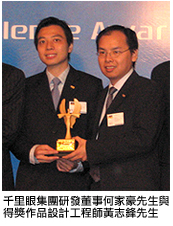 由城大企業有限公司千里眼集團所設計與研發的兩項科技產品,分別奪得兩項大獎, 再次印證城大在應用研究方面的卓越成就,也足見大學致力研發科技,以回饋香港社會的貢獻。