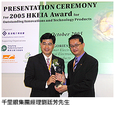 第一屆「香港無線科技傑出大獎」中,奪得3G應用方案金獎。頒獎典禮亦同樣於10月14日在香港金域假日酒店香港無線科技商會晚宴中舉行。得獎產品TeleEye RX304特別採用了千里眼集團自行研發的第二代視像壓縮技術Multi-rate Scalable Motion Adaptive Video Coder ( SMAC-M )。作為一部四路視頻及多功能的數碼視像錄影傳送器,TeleEye RX304可提供DVD畫質的視像及錄影。配合視像壓縮技術,TeleEye RX304能讓多位用戶同時進行錄影及視像監察,而不減畫