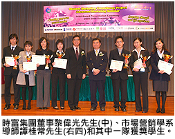 在是次市場研究計劃中,共有四組同學替時富集團旗下公司作市場調(diào)查,集團董事黎偉光先生表示:「各研究組別有高水準的表現(xiàn),提供的建議十分值得本集團參考。我們對於同學的工作熱誠及積極態(tài)度,感到十分滿意。」