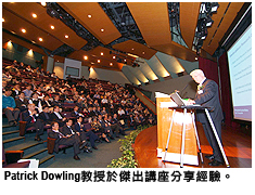Dowling教授以「通往一流應用研究大學之路」為講題,首先提到現今社會對研究型大學有更高的期望,希望該等大學為國家或地區的經濟發展作出直接的貢獻。他認為這是由於中國及印度的新經濟崛起,西方已發展的經濟體系要維持競爭力,就必須倚仗知識轉移和創新發明,故此西方政府正設法擴展大學對國家經濟發展所能作出的貢獻。他認為香港更重視發展以用家為本的研究,是不難理解的。