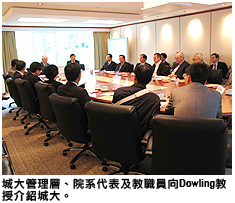 城大的學術及行政主管與Dowling教授見面後,均在多方面有所得益,例如招聘優秀教員、量度應用研究成果的方法以及推廣大學的策略。