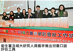 抽樣參與研究。鄒教授在開幕時(shí)指出,過去,香港社會(huì)所採用的語言評估工具主要從英語語言評估工具翻譯而來,欠缺本地語言環(huán)境的針對性。他說﹕「『香港兒童口語(粵語)能力量表』乃根據(jù)香港社會(huì)對兒童兩文三語的特殊要求予以發(fā)展,希望能更準(zhǔn)確和有效地鑒定有語言障礙的兒童,並提供合適的治療建議,進(jìn)而帶動(dòng)學(xué)者就本地有關(guān)課題進(jìn)行更多研究?!?