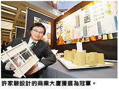 建築學副理學士課程學生許家駿在設計銅鑼灣一幢新的商業(yè)大廈時,考慮到四周環(huán)境缺乏綠化元素,於是嶄新地在商廈加入空中花園和平臺花園的結構,為繁忙的商業(yè)區(qū)注入綠化色彩。