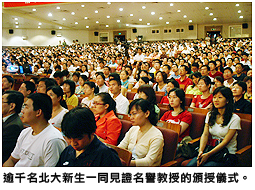 頒授儀式於9月6日的北大新生開學典禮上舉行,由許智宏校長親自頒發證書。逾千名新生在氣氛莊嚴的百周年紀念講堂內,一同見證了這歷史性的一刻。