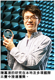 香港城市大學(xué)(城大)電子工程學(xué)系三年級學(xué)生陳嘉澍,憑藉「無線射頻集成電路」上的卓越研究,榮獲國際電機(jī)暨電子工程師學(xué)會(IEEE)轄下微波理論與技術(shù)學(xué)會頒發(fā)2007本科生獎學(xué)金,每年全球僅10名學(xué)生獲此殊榮。 陳嘉澍除了在國際獎項(xiàng)中揚(yáng)威外,他的研究同時也贏得本地獎項(xiàng)。他在工程及科技學(xué)會(香港分會)舉辦的青年會議展覽2007比賽學(xué)位組別中奪得冠軍。 陳嘉澍較早前獲頒富布賴特科技獎學(xué)金,是今年全球27名該項(xiàng)獎學(xué)金得主之一、更是唯一來自香港的得獎?wù)摺K麑@資助到美國加州大學(xué)柏克萊分校攻讀博士研究課程,繼續(xù)鑽研「無線射頻集成電路」設(shè)計(jì)。 陳嘉澍對接連獲獎感到高興,認(rèn)為這是一種鼓勵。獎項(xiàng)除了肯定他的研究外,亦激勵他努力做得更出色。 他說:「指導(dǎo)老師的悉心教導(dǎo),以及學(xué)長和同學(xué)的協(xié)助和支持,為我營造了有利學(xué)習(xí)和研究的環(huán)境。我十分珍惜在城大的學(xué)習(xí)機(jī)會。」 陳嘉澍再次獲獎印證城大在電子工程學(xué)教學(xué)和應(yīng)用研究方面的卓越成就。他得獎的研究課題亦是他畢業(yè)習(xí)作的主題,主要探索如何提升「無線射頻集成電路」在無線通訊設(shè)備中的功能。 城大電子工程學(xué)系講座教授兼科學(xué)及工程學(xué)院院長陳志豪教授和電子工程學(xué)系副教授薛泉博士,分別是陳嘉澍的導(dǎo)師和副導(dǎo)師。陳教授說:「陳嘉澍多次獲獎,除因?yàn)樗麑W(xué)業(yè)成績優(yōu)異外,更重要是他做事認(rèn)真,有良好的學(xué)習(xí)態(tài)度。」 陳嘉澍表示已選擇到美國加州大學(xué)柏克萊分校深造,因?yàn)樵撔T跓o線通訊方面的科研成果卓著,而有感中國在這方面的發(fā)展較弱,他計(jì)劃學(xué)成後回國參與無線通訊的發(fā)展工作。 | _______ | | 城 大 致 力 提 供 專 業(yè) 教 育 及 從 事 應(yīng) 用 研 究 。 | _______ | | |