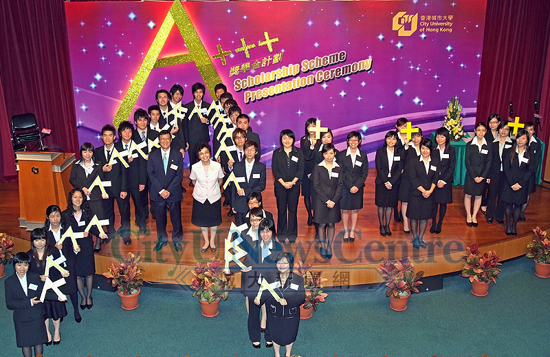 香港城市大學(城大)於10月24日舉行第二屆「A+++獎學金」頒獎禮,頒發獎學金予44名一年級學生,藉以獎勵他們在學術成績及體育方面的卓越表現。家長、中學校長和老師出席了頒獎禮,分享學生獲獎的喜悅心情。 城大常務副校長唐叔賢教授在頒獎禮上致開幕辭時表示,對多名新生獲頒獎學金感到欣喜。「今年獲頒獎學金的學生較去年增加了57%,顯示城大錄取的本科生質素有所提升。我希望同學善用大學這三年的時間,繼續努力裝備自己,迎接未來的挑戰,」唐教授說。