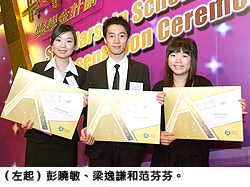 獲獎學生中有來自商學院市場營銷學系的梁逸謙、創意媒體學院的范芬芬及人文及社會科學學院英文與傳播系的彭曉敏。他們對於獲頒獎學金都表示十分興奮,並視之為學習動力,同時表示會好好利用這個機會充實自己。