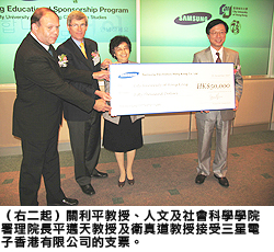香港城市大學(城大)中文、翻譯及語言學系五名語文學榮譽文學士(韓語專修)學生獲韓國企業三星電子香港有限公司頒發奬學金,表揚他們的傑出學術成績。 城大中文、翻譯及語言學系在2007-08學年推出本港首個主修韓語的語文學榮譽文學士課程(韓語專修),藉此鼓勵更多學生認識韓國文化。透過課堂學習和提供交流機會,該課程協助學生從不同層面了解韓國的文化風俗及語言。 為鼓勵修讀該課程的學生,三星電子香港有限公司舉辦了一項學術比賽,邀請參賽者以「對韓國文化的熱誠」或「韓國文化在國際舞臺上扮演的角色」為題提交學術簡報,並根據學生對韓國文化的了解及研究,選出五名表現突出的學生,各頒發一萬元獎學金。