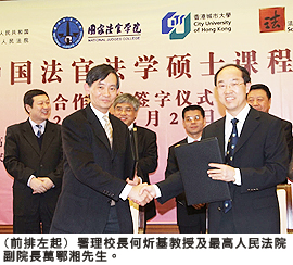 香港城市大學(xué)(城大)法律學(xué)院於2月29日與國家法官學(xué)院假北京最高人民法院舉行「中國法官法學(xué)碩士課程」簽署儀式。城大法律學(xué)院將協(xié)助國家法官學(xué)院,為內(nèi)地現(xiàn)職法官提供碩士水平的培訓(xùn),正式成為全國培訓(xùn)法官的基地之一。