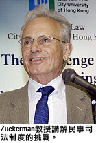 Zuckerman教授亦表示,香港正面對民事司法改革的挑戰,舉辦這次講座合時合宜。他說:「我們發現的問題都是能預見的,情況與其他國家差不多。訴訟缺乏效率,主要是因為訴訟成本過高,程序不能迅速獲得處理。由於這些不明朗因素,完成訴訟的整筆費用往往大得無法預計。」