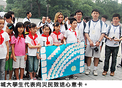 由香港城市大學(城大)學生、校友及教職員組成的「四川地震關注小組」,發(fā)揮城大關心社會的博愛精神,於8月11日至20日到災區(qū)探訪,透過遊戲等心理輔導活動協(xié)助災民告別悲傷、重新生活。