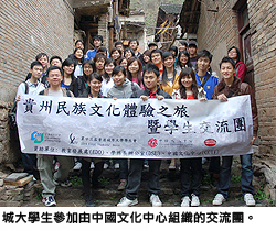 建築科技學部的學生則把注意力放在當地的建築特色上,甚至有幸與鼓樓重建計劃的建築師會面交流。透過考察,學生親身了解到由唐代流傳至今的傳統中國建築風貌,以及侗族鼓樓獨特的建築結構。中國文化中心組織的交流團則以研究和比較漢族與少數民族不同文化觀念為主,探討當代少數民族面對的文化衝擊及生存困局問題。