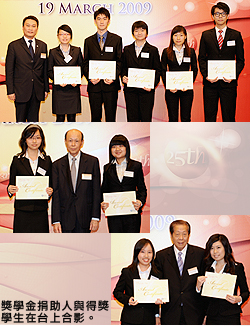 香港城市大學(xué)(城大)3月19日舉行2008-2009年度獎(jiǎng)學(xué)金頒獎(jiǎng)典禮,獎(jiǎng)學(xué)金項(xiàng)目超過500個(gè),總額逾1,100萬港元。獎(jiǎng)學(xué)金分別來自社會(huì)各專業(yè)團(tuán)體、慈善基金、私人機(jī)構(gòu)、教職員及校友捐贈(zèng)。