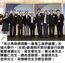 國務院今年1月審議通過《珠江三角洲地區改革發展規劃綱要》(綱要)。香港工商界向來與珠三角發展關係密切,綱要的出臺對香港日後的發展影響深遠。該論壇為香港工商界提供平臺,就此議題發表意見、分享經驗、展望香港工商界的機遇與挑戰、可發揮的優勢及作用,以及對各方面的期望。