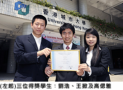 香港城市大學(城大)科學及工程學院三名二年級學生組隊參加「2009數學建模競賽」,在來自12個國家的1,675支國際隊伍中脫穎而出,獲得二級榮譽獎。